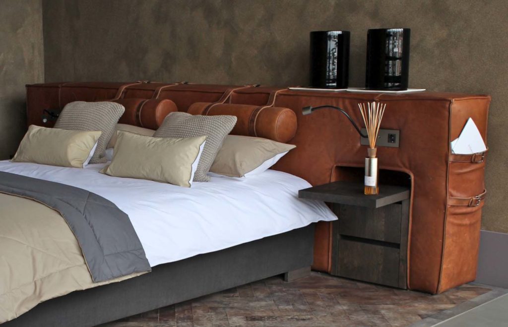 The robust-chic headboard designed for Nilson is made from carefully selected leather. The headboards are custom made by hand in the Netherlands. For more information contact us at info@studiosluijzer.com