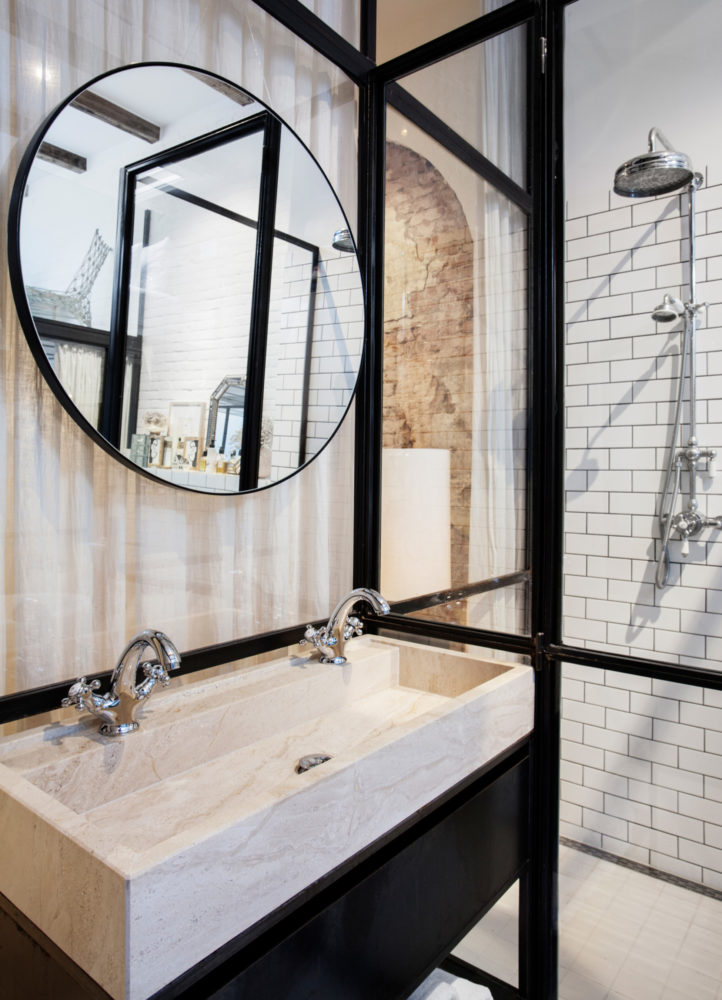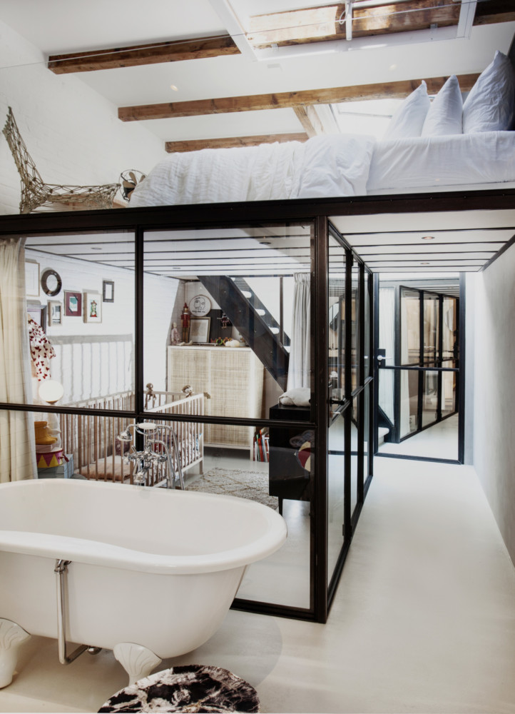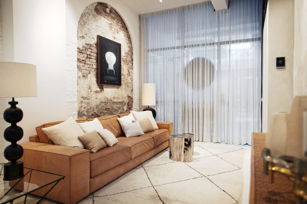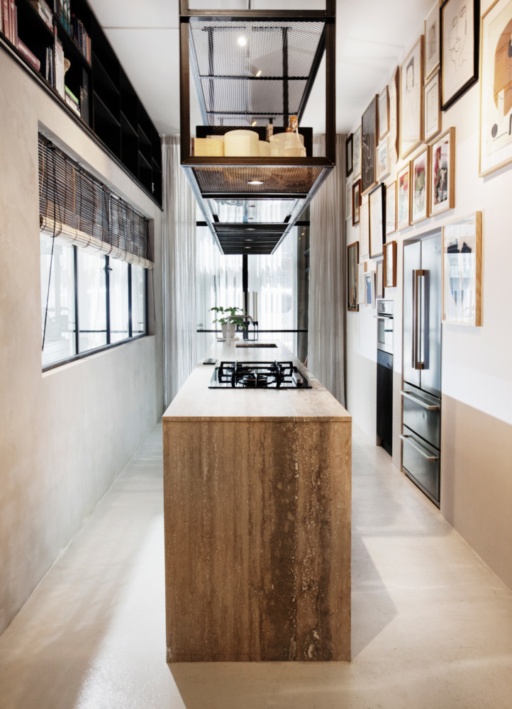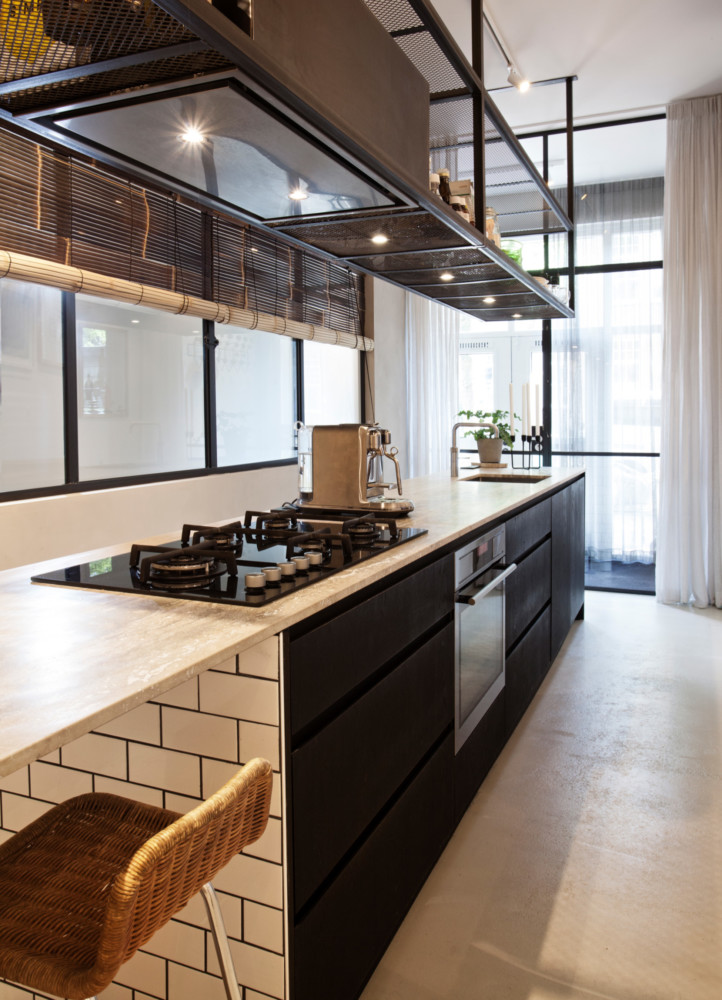 EN: Studio Sluijzer has made a interior design for a comfortable family house in a unique canal house in Amsterdam. Because of the high ceilings, it became possible to organize the space in a special way and to make optimal use of the space. The neutral color palette and the natural materials ensure a serene appearance. The travertine kitchen, the old brick in combination with the black steel and the wooden elements provide an attractive overall picture.
