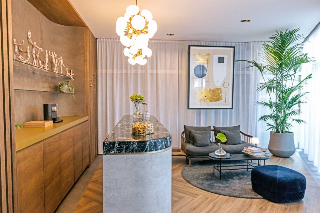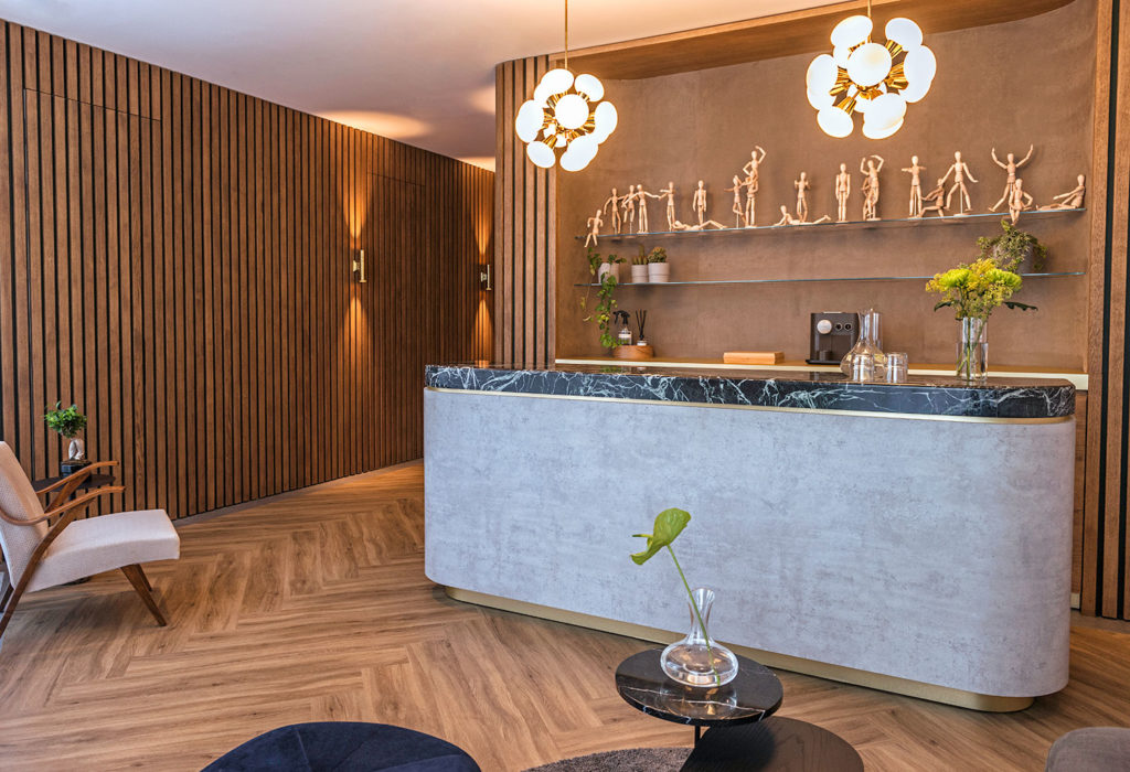 Studio Sluijzer was responsible for the interior design of Beauty Salon Hairless in Bratislava, Slovakia. The design totally matches the appearance and what Hairless stands for. By using high-quality and natural materials such as wood and marble, a cozy atmosphere has been created. The striking corridor with the hidden doors is a real eye-catcher in the design. The salon has a luxurious appearance and has a number of beautiful vintage items that are combined with new design. This ensures a beautiful and contrasting interiordesign.